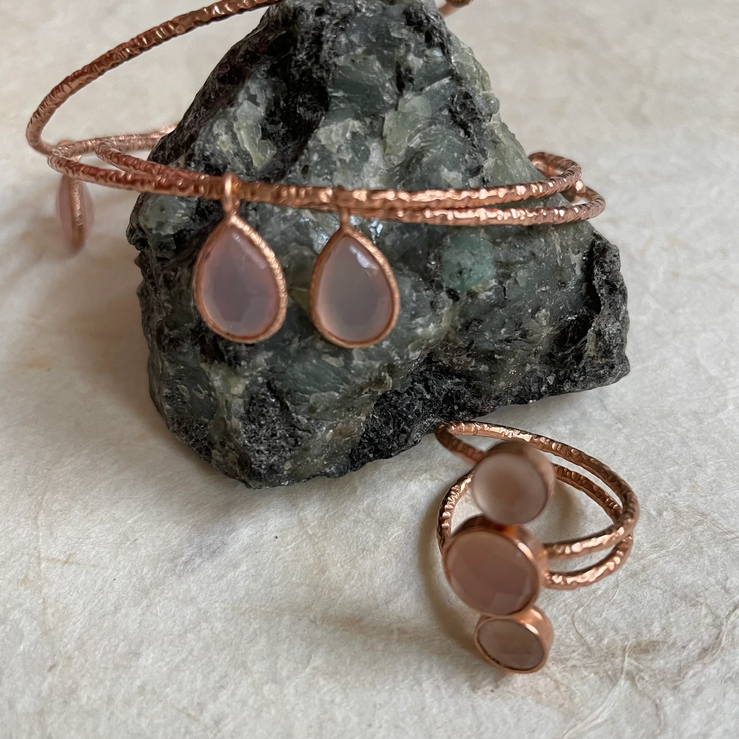 Bring a piece of nature to your hand. This clover - shaped ring, with its delicate green stone, is like a quiet whisper of the outdoors. Let nature’s beauty adorn your style.